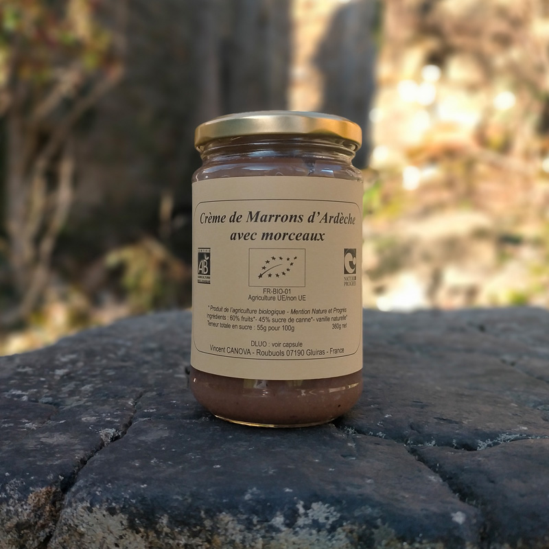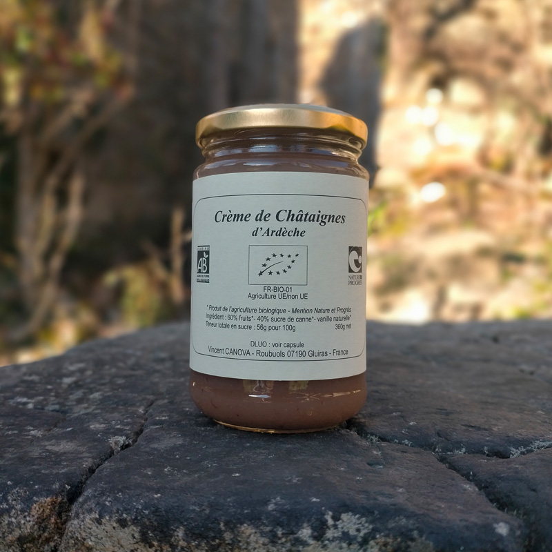 Crème de marrons, 55% de teneur totale en sucre, vanille gousse de qualité !, 360g : 5,80€