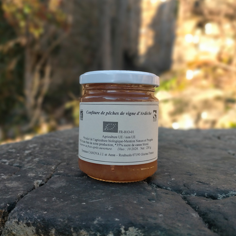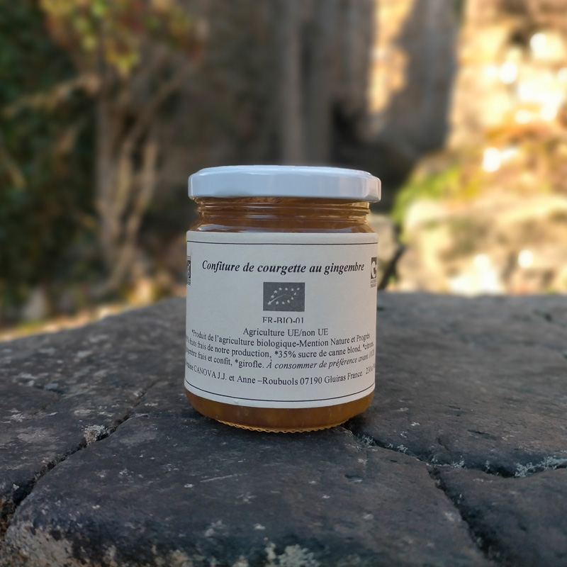 Confitures de pêche de vigne aux épices, figues au miel, courgette-gingembre, tomates vertes-citron, myrtilles sauvages, fraises, mûres… Selon les saisons et les productions du jardin !