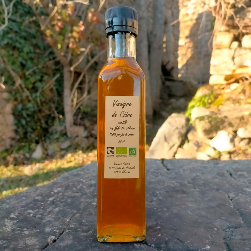 Vinaigre de cidre vieilli en fût de chêne, 100% pur jus de pomme – 25cl : 3,90€