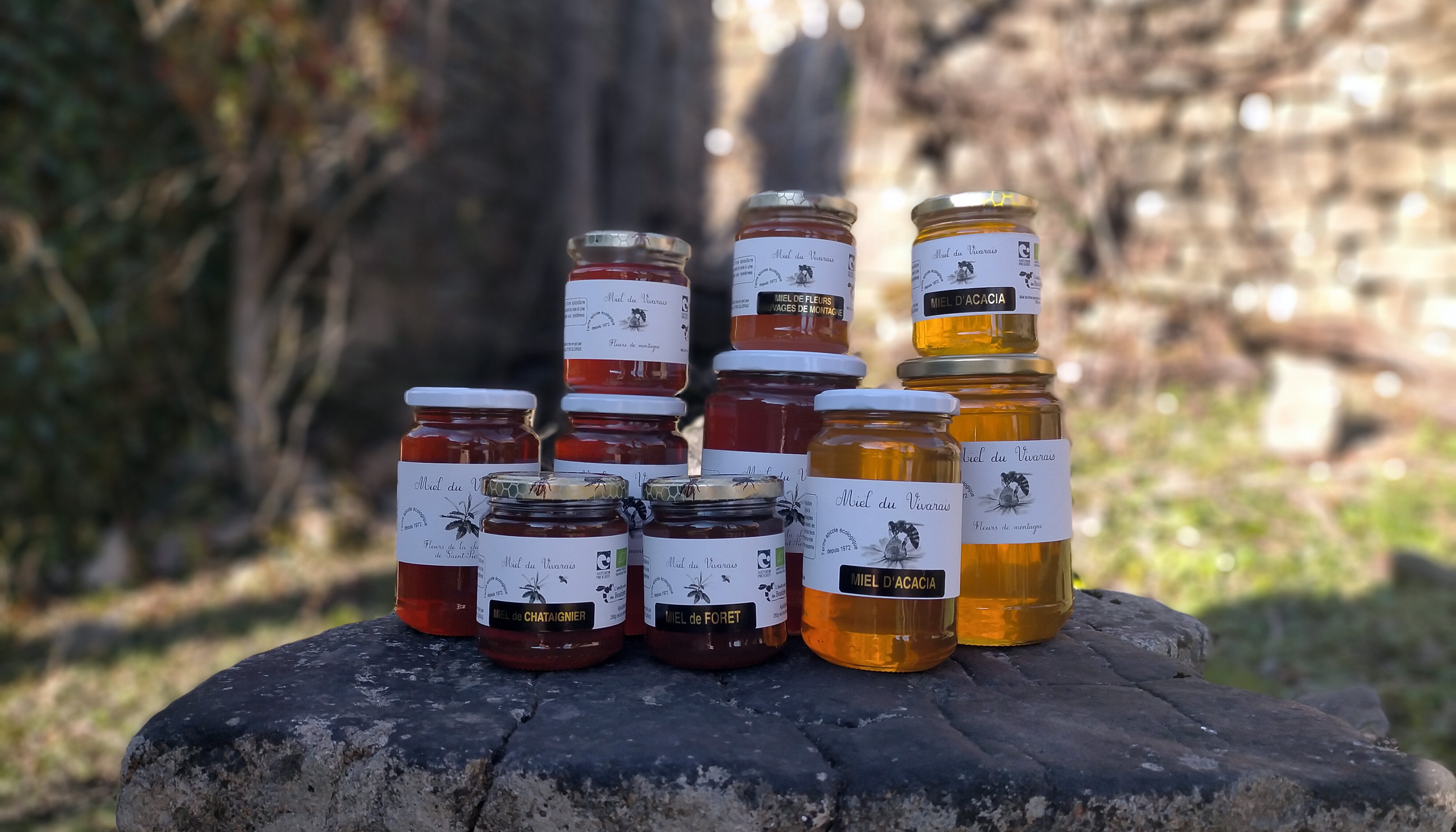 Printemps, Fleurs de montagne, Forêt, Châtaignier, Fleurs sauvages… Des miels d’appellation pour permettre au consommateur de s’y retrouver mais qui en réalité sont issus d’une seule récolte, d’un seul rucher, condensés de l’ensemble des fleurs visitées par les abeilles sur la saison.
