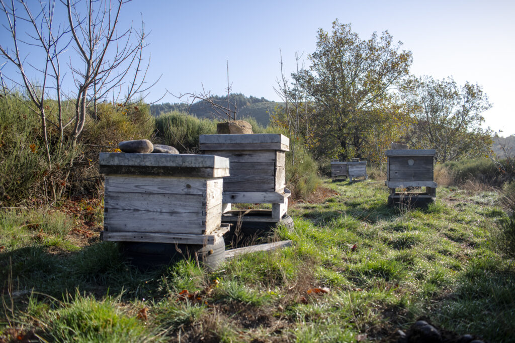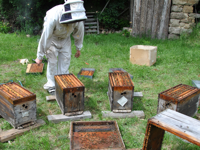 - Apiculture sédentaire avec des colonies d’abeilles noires locales issues d’essaims naturels
